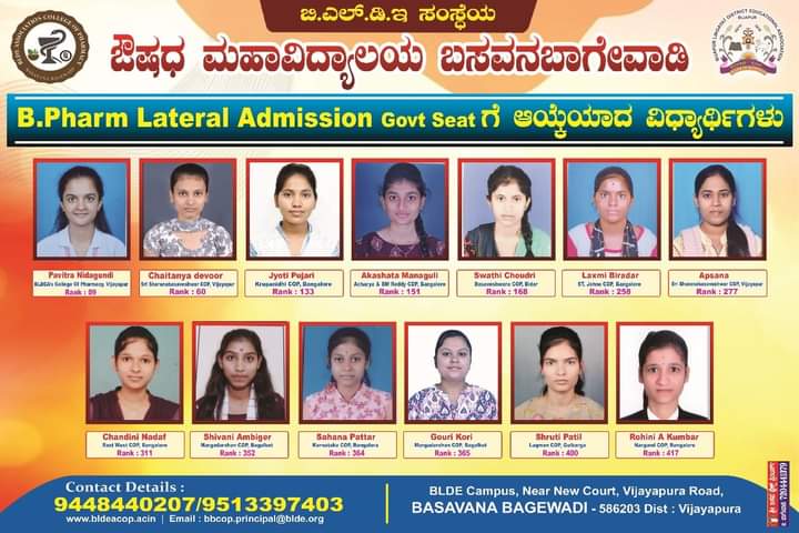 BLDE Association's College of Pharmacy, Basavana Bagewadi was founded in 2019 and since then it has earned great respect and reputation across the state of Karnataka for imparting quality pharmaceutical education.